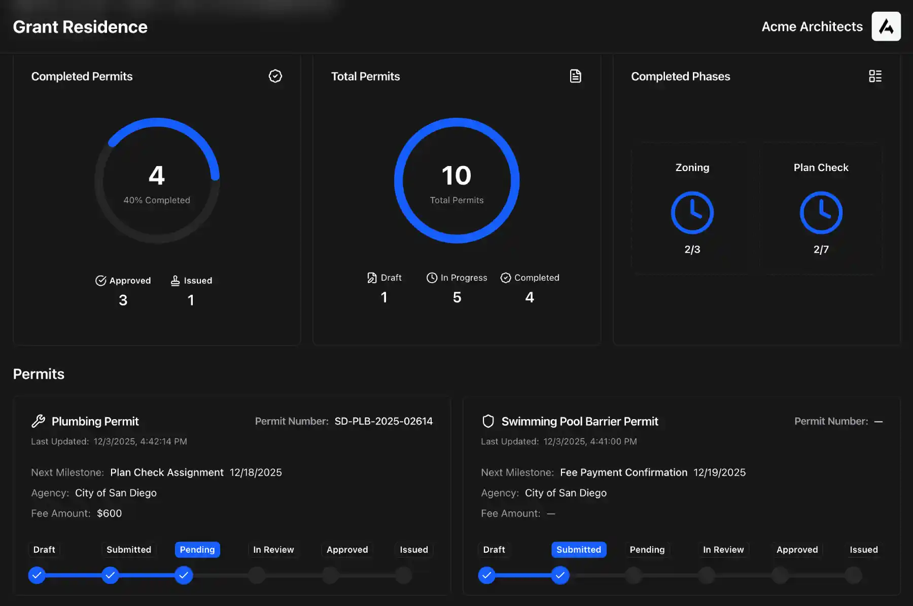 If your architect isn't using modern permit tracking tools, consider sharing this article with them. Permitful helps architects provide better transparency to their clients through public project dashboards that show real-time permit statuses, milestones, and progress—all without requiring constant emails or phone calls.